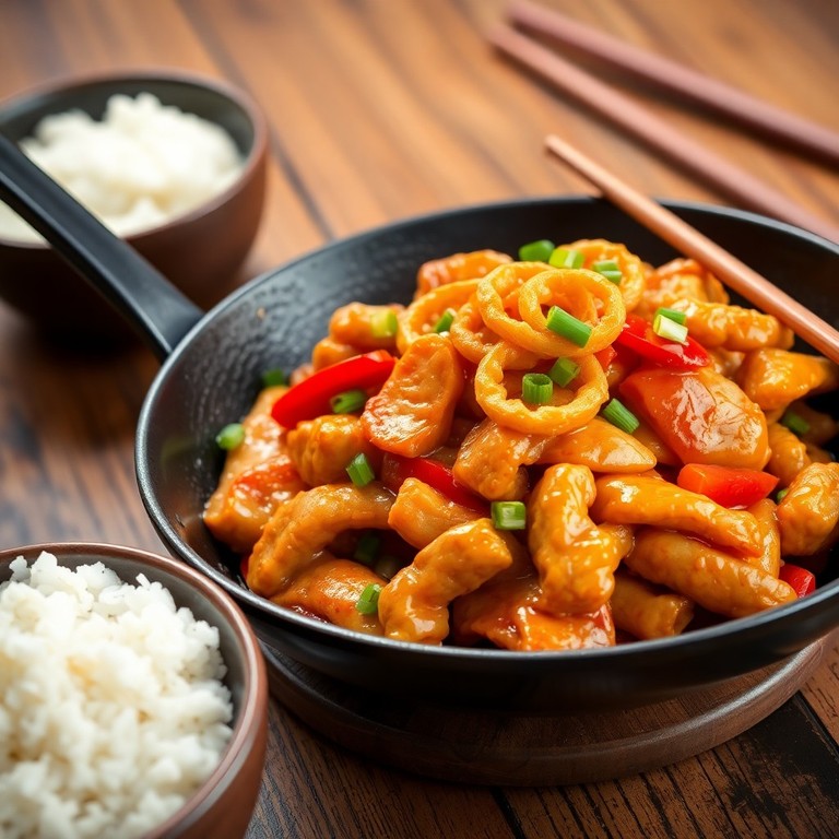 - Stir-Fry de Frango ao Estilo Asiático com Cebola Crocante