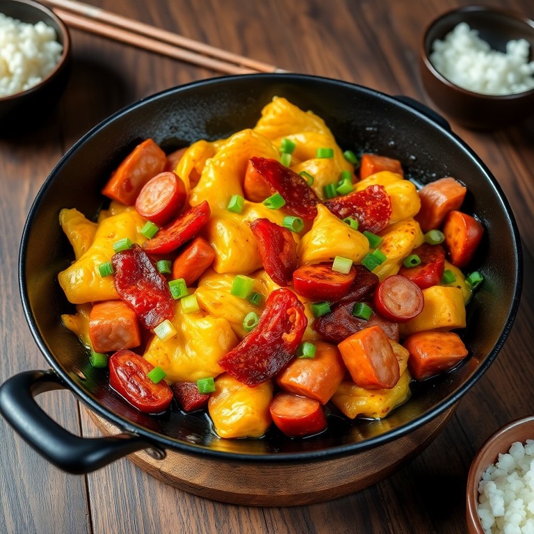 - Stir-fry de ovos, bacon e linguiça