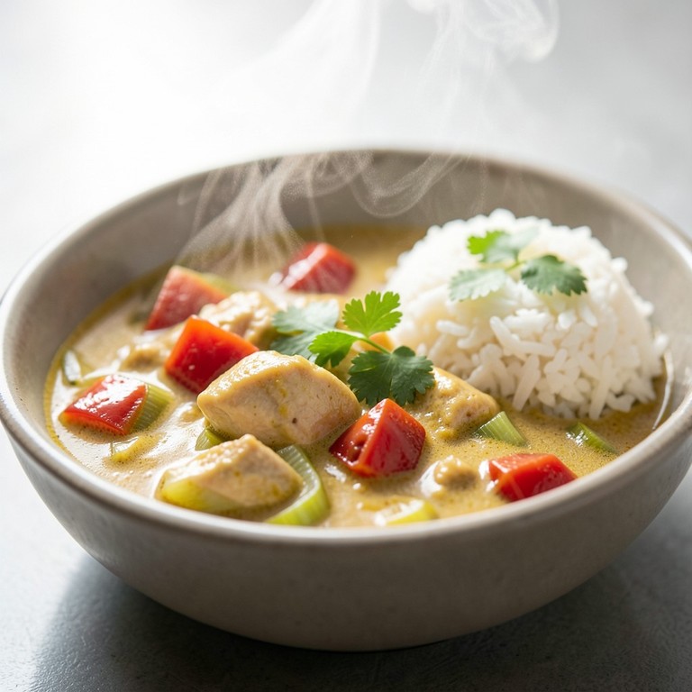 - Cremiges Hähnchen-Lauch-Curry mit Paprika und Reis