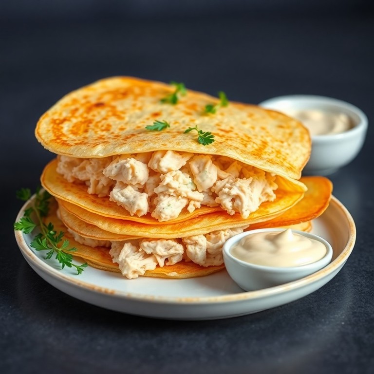 Panquecas de Leite com Recheio de Frango e Maionese