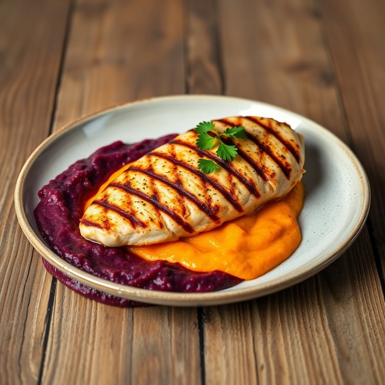 Frango Grelhado com Purê de Beterraba e Cenoura