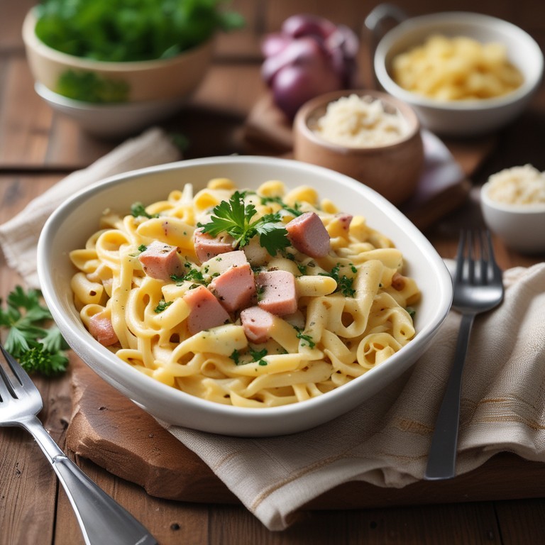 Macarrão Cremoso com Batata, Presunto e Cebola