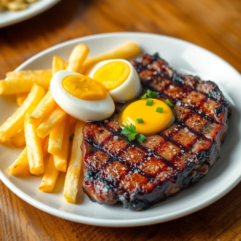 Bistec a la Parrilla con Huevos y Papas Fritas