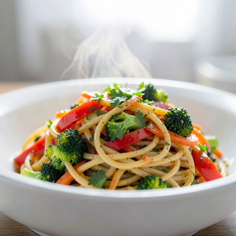 Macarrão Rápido com Legumes Salteados ao Alho e Azeite