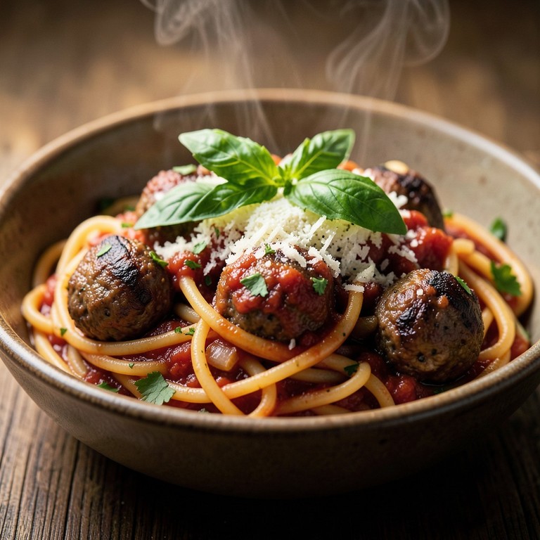 Espaguete Sem Glúten com Almôndegas Recheadas em Molho de Tomate San Marzano