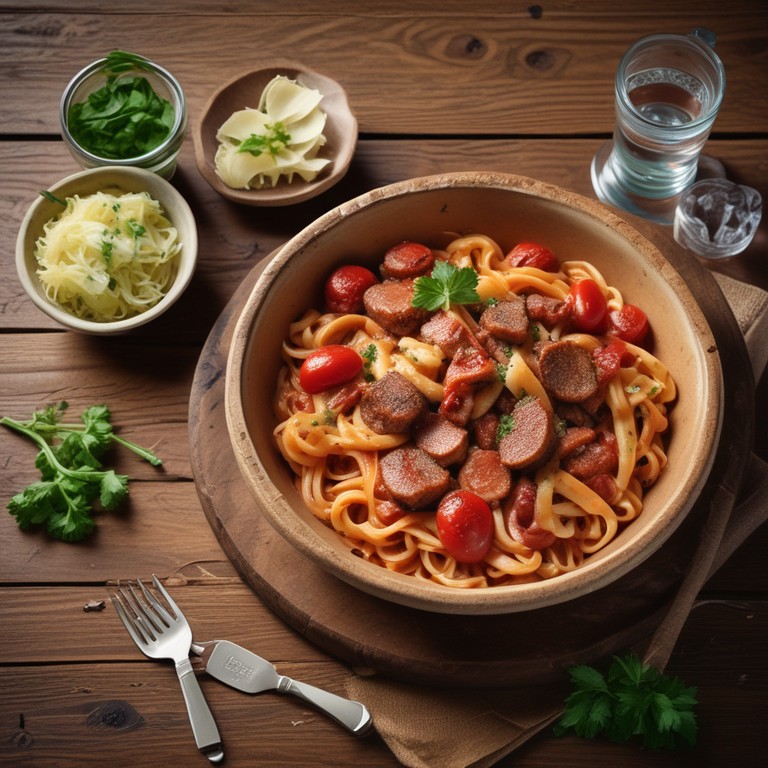 Macarrão à Carbonara Brasileira com Linguiça Calabresa e Molho de Tomate