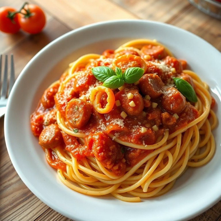 Espaguete Cremoso com Calabresa e Tomate