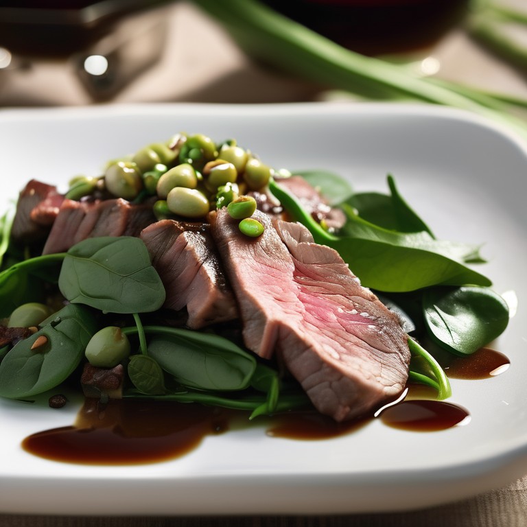 Salteado de Espinacas con Cebolla, Habas y Carne
