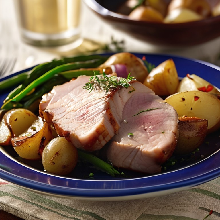 Pollo en Salsa de Tomate con Cebolla y Patatas