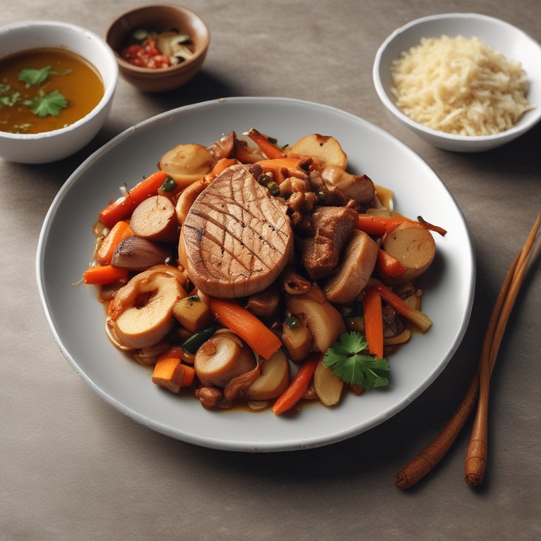 Salteado de Lomo con Cebolla, Berenjena y Zanahoria