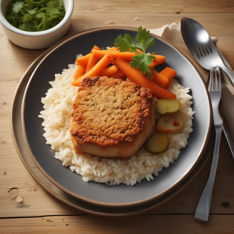 Lomo Rebozado con Zanahoria, Berenjena y Arroz
