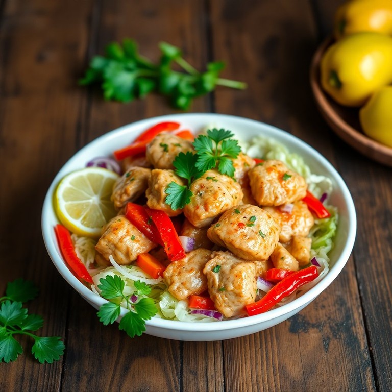 Frango ao Limão com Pimentões e Repolho Crocante