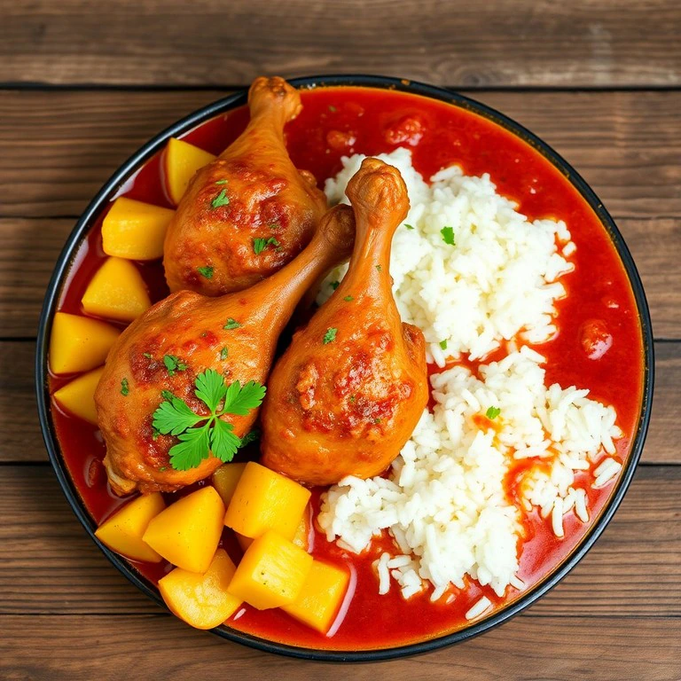 - Coxa e Sobrecoxa ao Molho de Tomate com Batatas e Arroz
