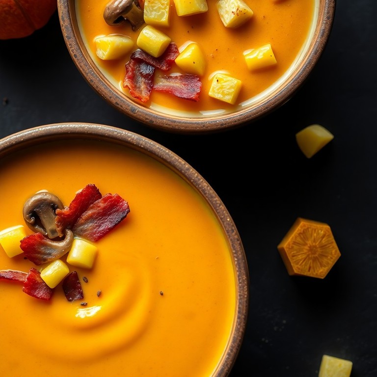 Sopa Cremosa de Calabaza y Zanahoria con Crujiente de Tocino