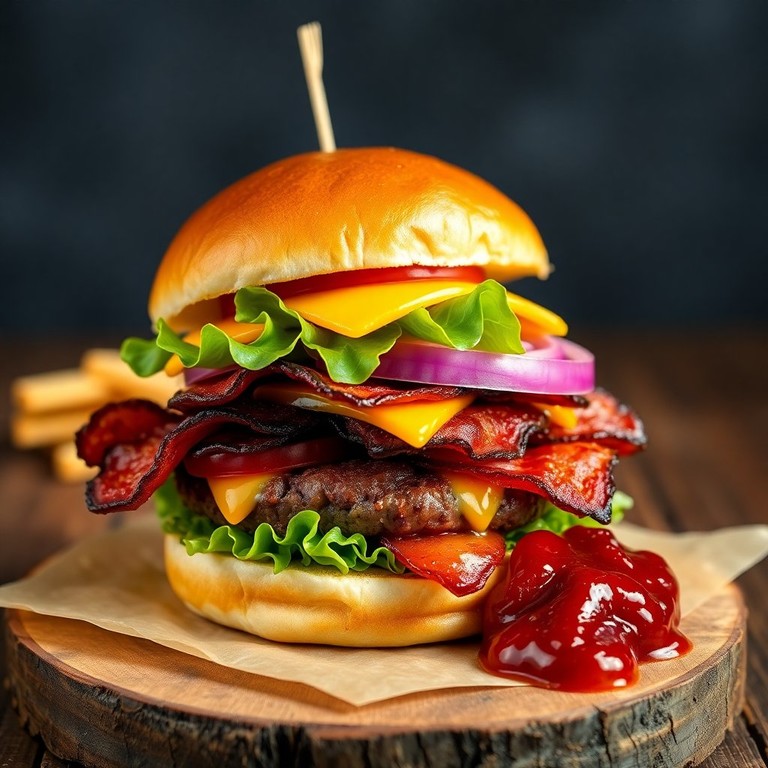 Sanduíche Supremo de Hambúrguer Artesanal com Bacon Crocante e Queijos Derretidos
