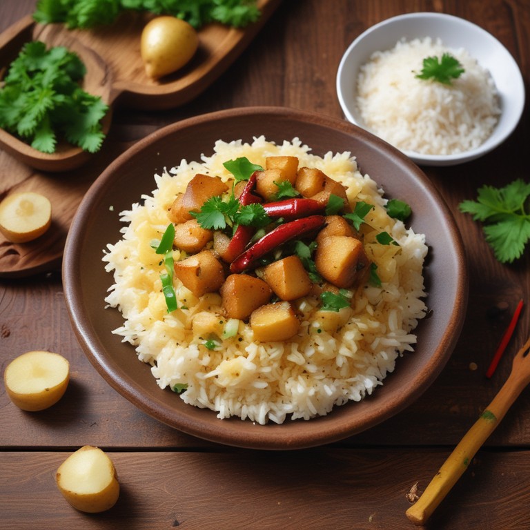 Spicy Tamarind Rice with Crunchy Ground Nuts
