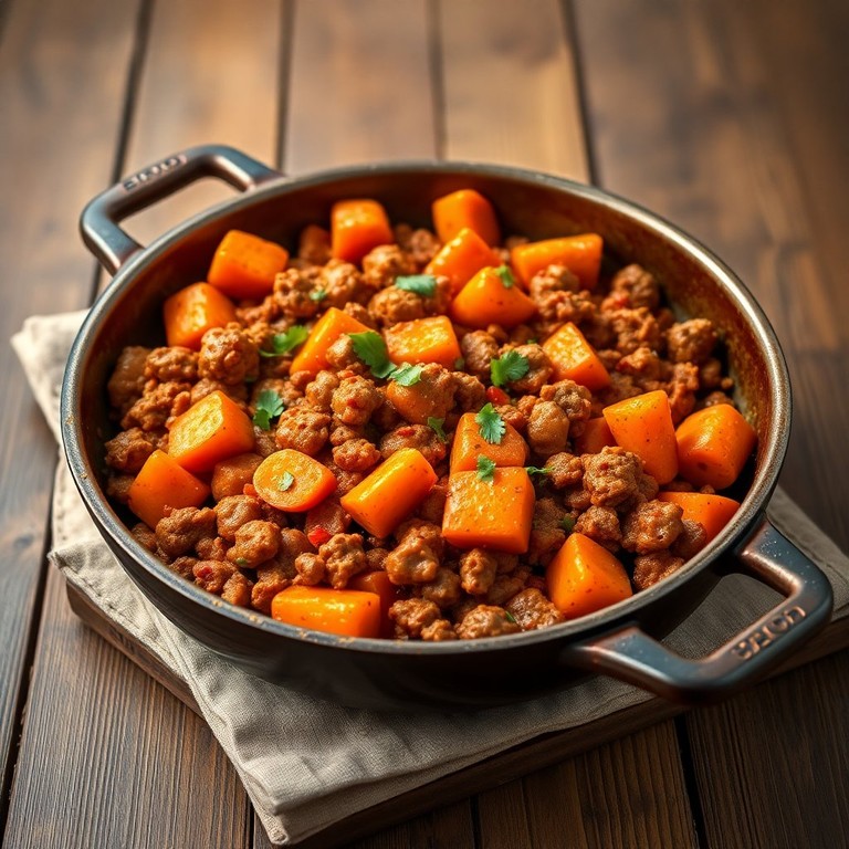 Möhren-Hackfleisch-Pfanne mit würziger Soße