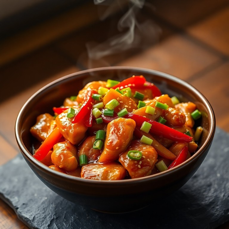 Frango Picante com Gengibre e Pimentões ao Molho de Mel e Shoyu