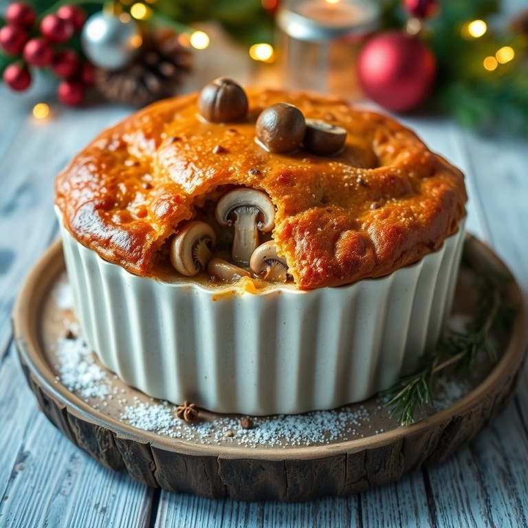 Pastel Vegano de Natal com Recheio de Cogumelos e Temperos Natalinos