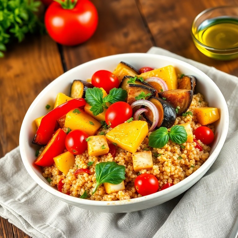 Mediterraner Quinoa-Salat mit geröstetem Gemüse