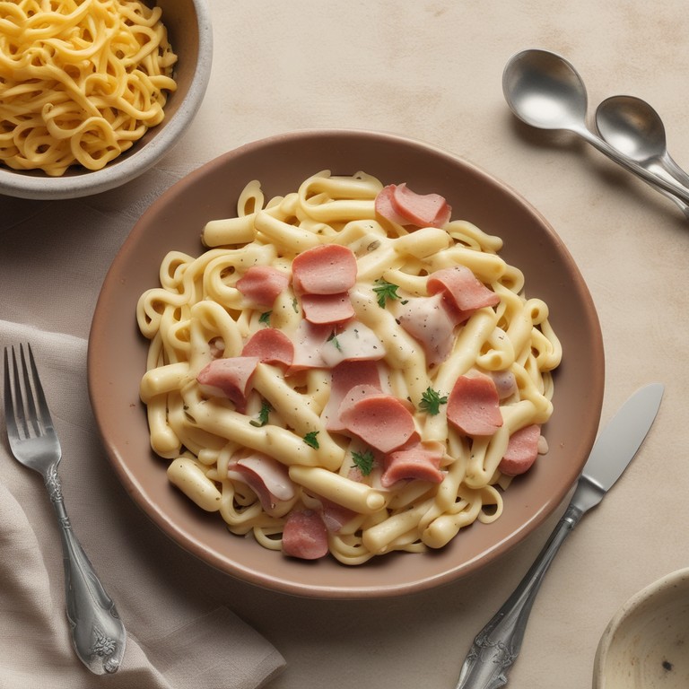 Macarrão com Queijo, Presunto, Creme de Leite e Calabresa