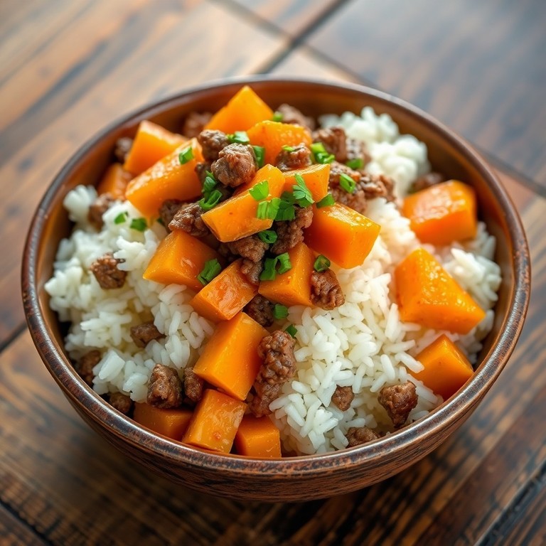 Tigela de Arroz Colorido com Carne Moída e Legumes