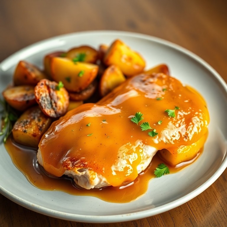 Frango Suculento ao Molho Cítrico de Laranja com Batatas Rústicas Assadas