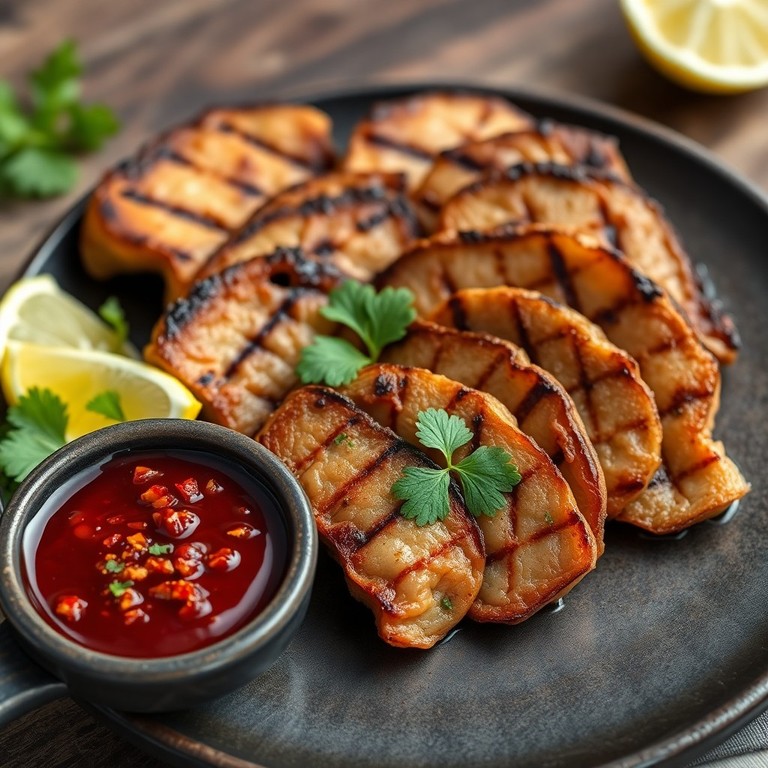 Grilled Temporal Lobe with Spicy Blood Dipping Sauce