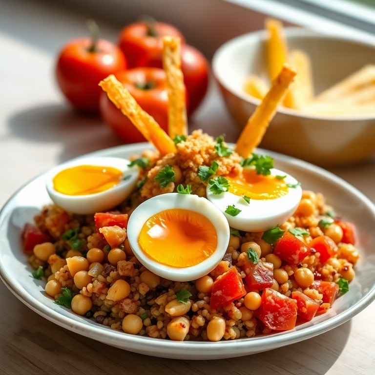 Sauté Rápido de Quinoa, Grão de Bico e Legumes com Ovo Cozido
