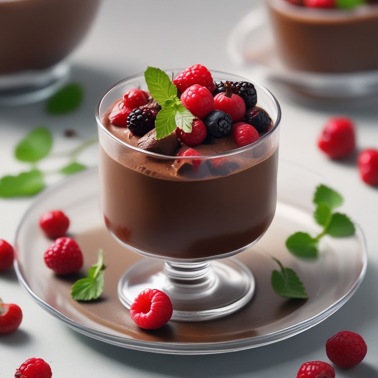 Pudim de Chocolate Cremoso com Frutas Vermelhas e Opções Variadas