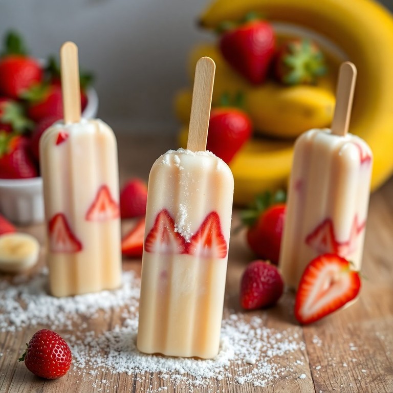- Picolé de Banana com Leite em Pó e Morango