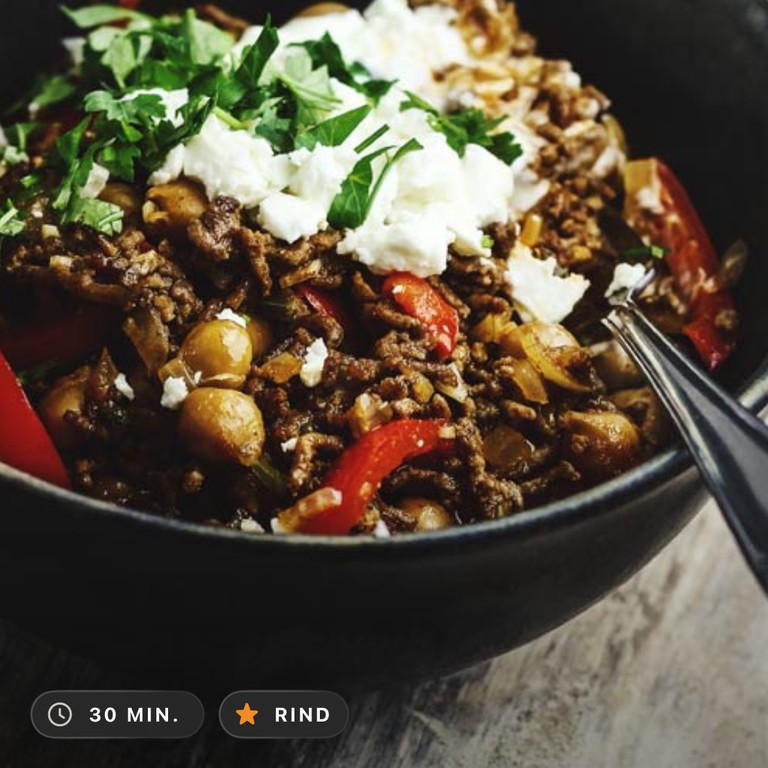 Hackfleischpfanne mit Kichererbsen und Feta