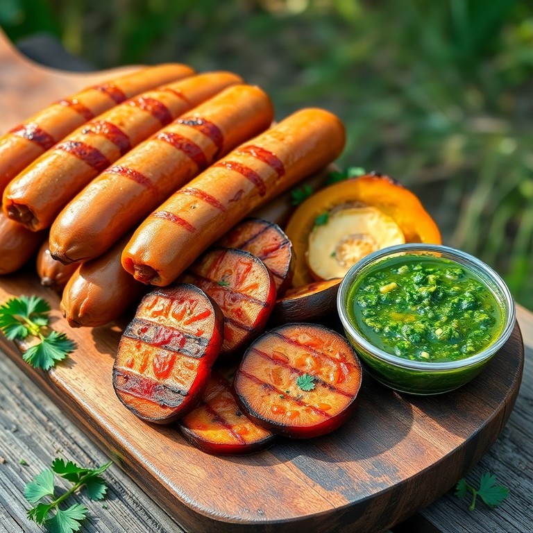 Chorizos a la Parrilla con Boniato y Chimichurri