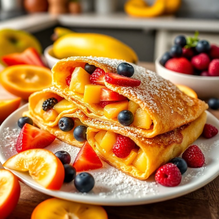 Panquecas de Leite e Açúcar com Recheio de Frutas