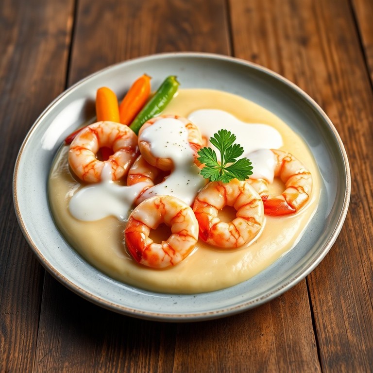 Camarões ao Leite de Coco com Purê de Batata e Legumes