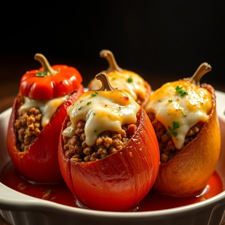 Stuffed Tomato and Onion Meat Boats with Creamy Rice Filling
