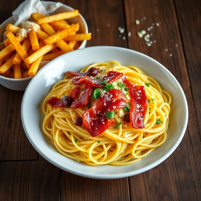 Macarrão à Carbonara com Batatas Crocantes