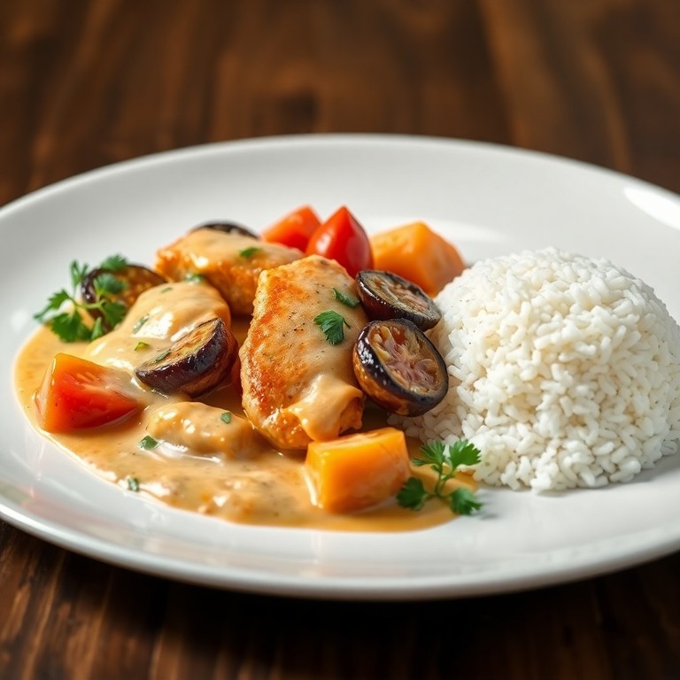 Poulet à la crème et aubergines méditerranéennes