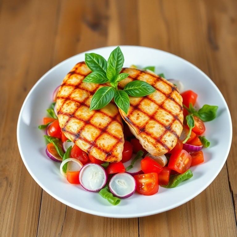 - Gegrilltes Hähnchenbrustfilet mit mediterranem Tomaten-Salat