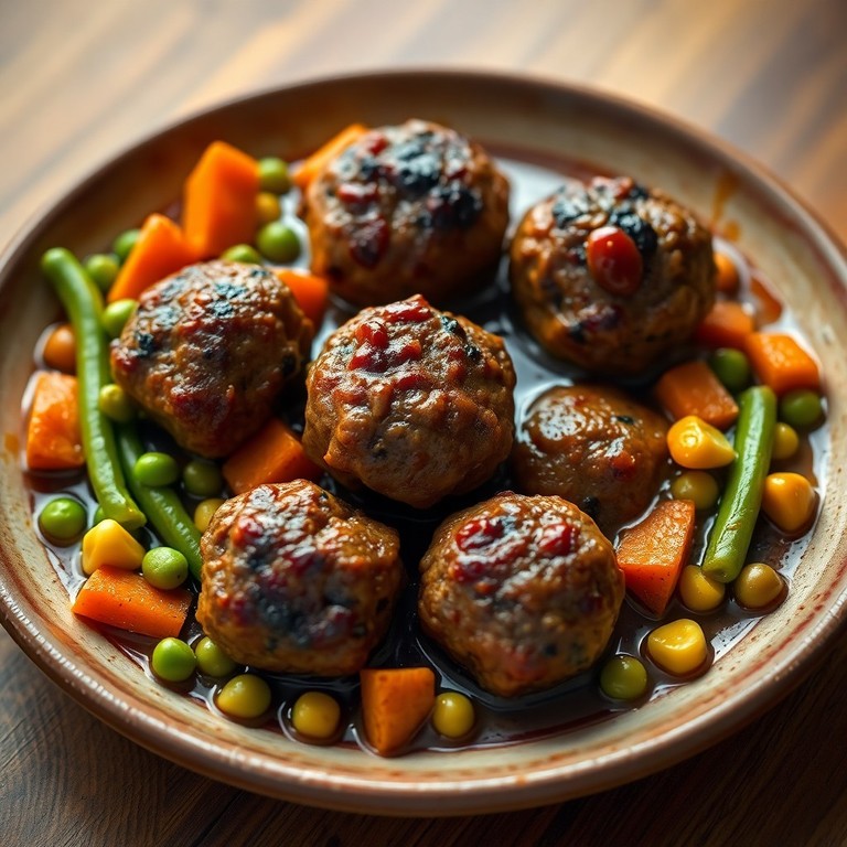 - Herzhafte Frikadellen mit buntem Gemüse und Pfeffersoße