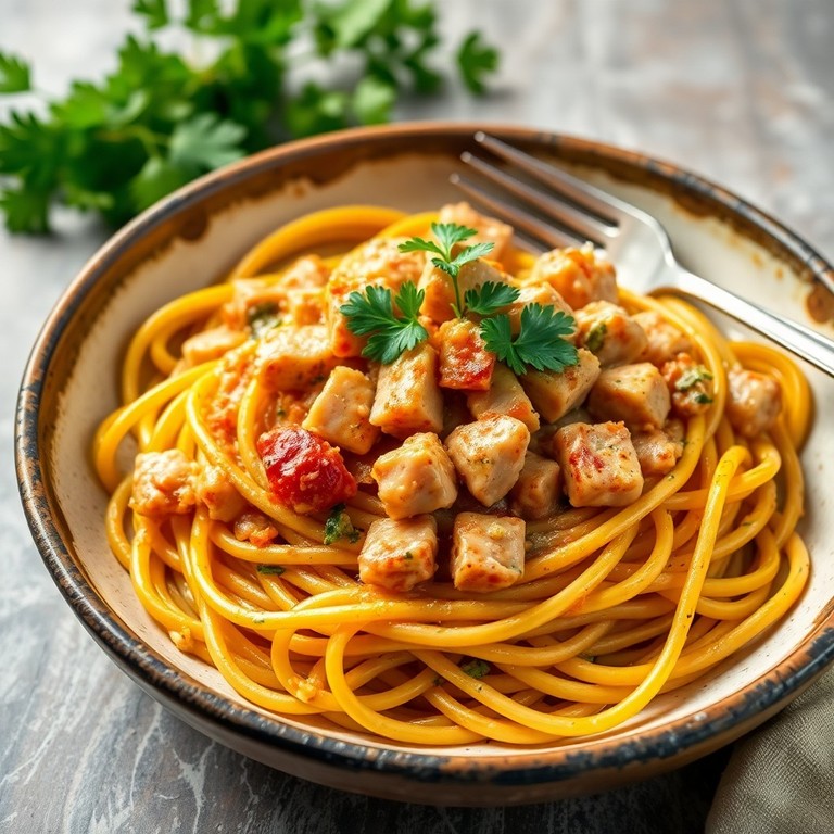 - Spaghetti au thon, courgettes sautées et pâte de curry verte