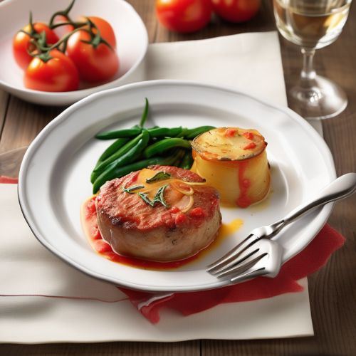 Tomaten-Kalbs-Medaillons mit Paprika-Kartoffelgratin