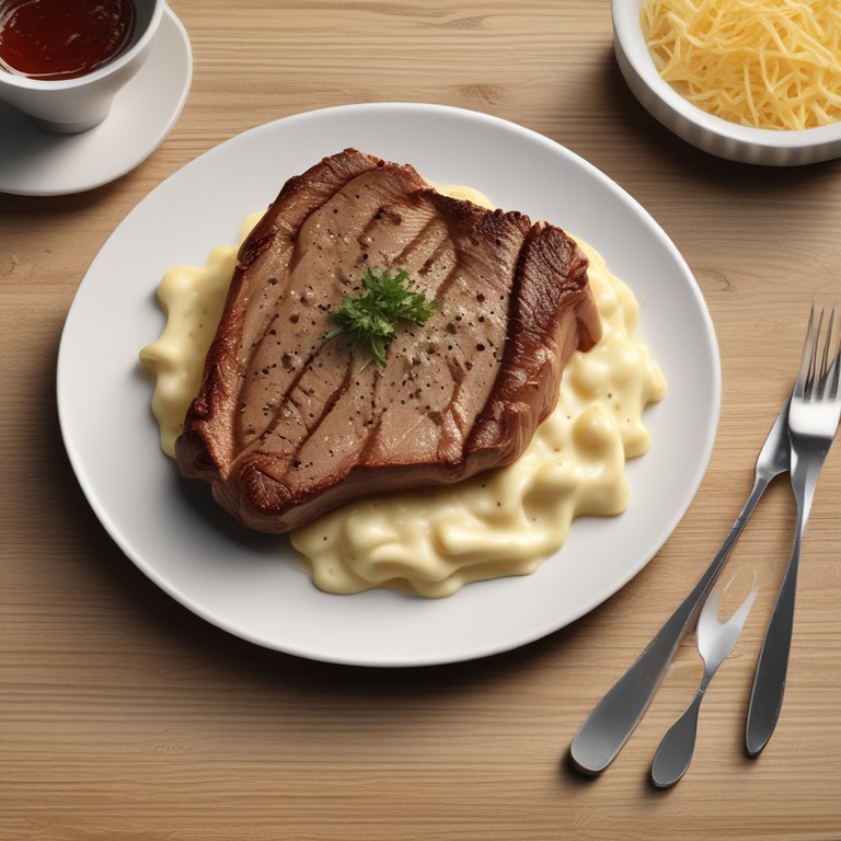 Bife com Queijo Ralado e Molho de Nata