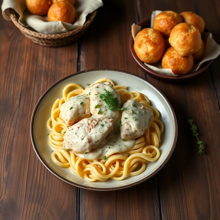 Coxa de Frango ao Molho Cremoso com Macarrão Parafuso