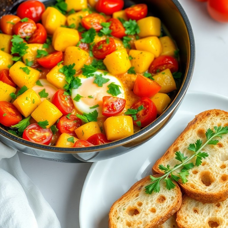 Revuelto de Tomate, Papa y Huevo con Hierbas