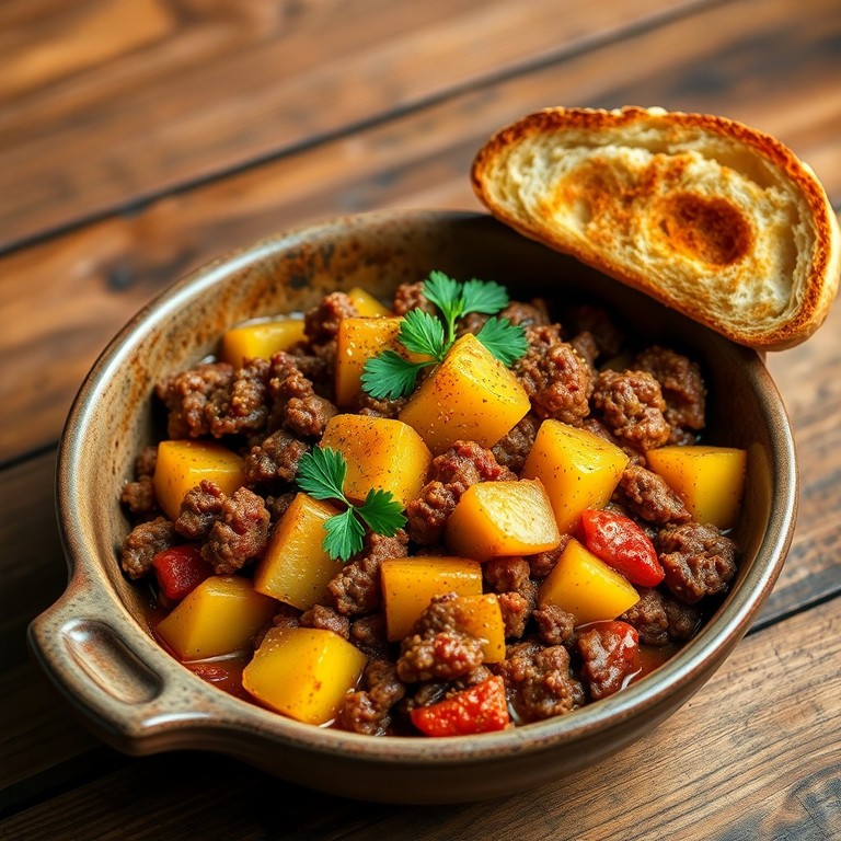 Picadinho Cremoso de Carne com Batatas Temperadas