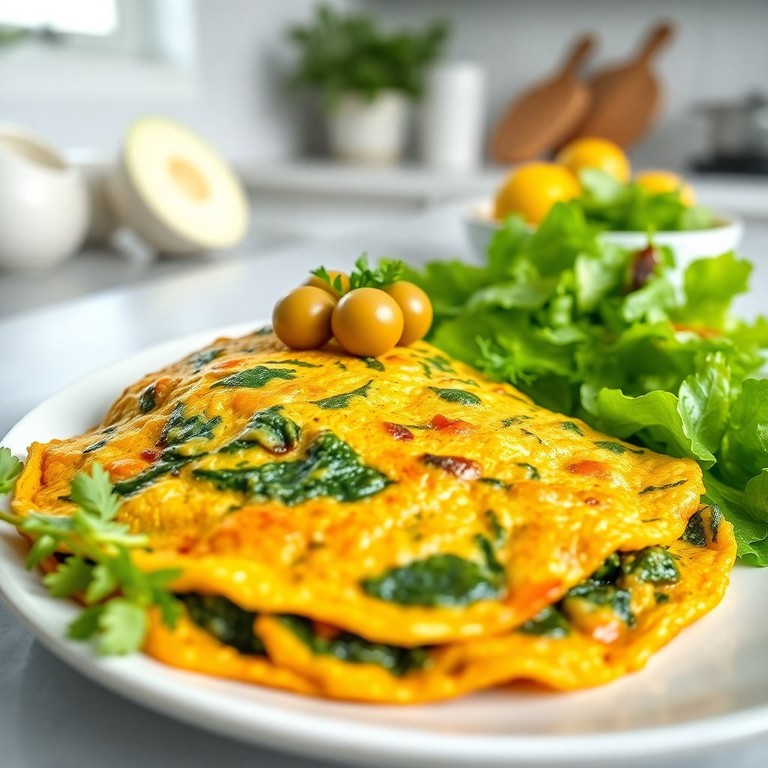 Omelete de Espinafre e Cenoura com Azeitonas