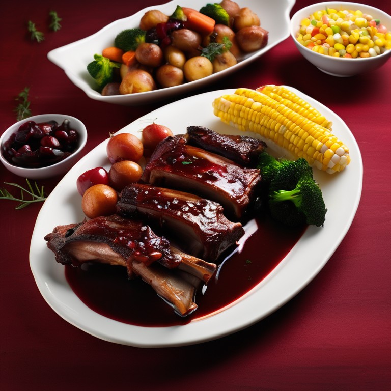 Pork Ribs with Roasted Vegetables and Cherry Sauce
