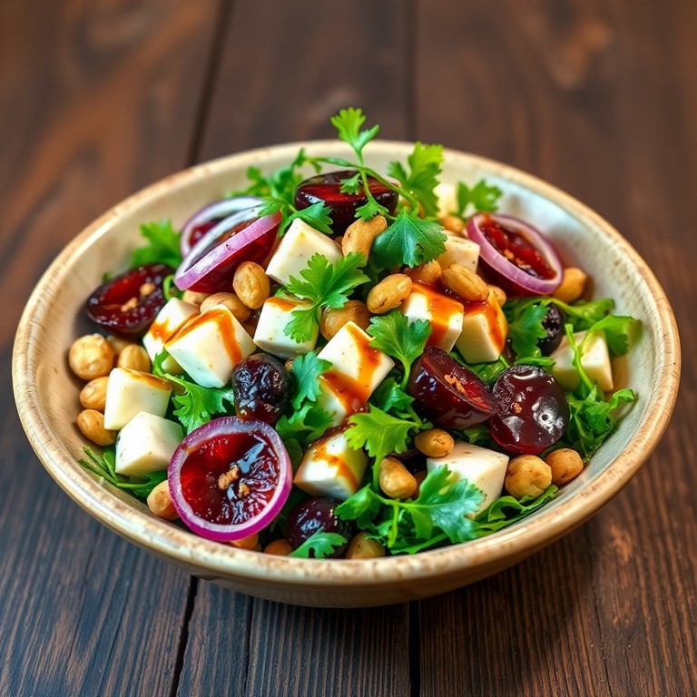 Salada Refrescante de Queijo, Amendoim e Ameixa