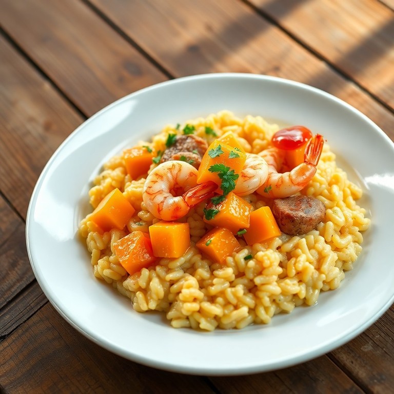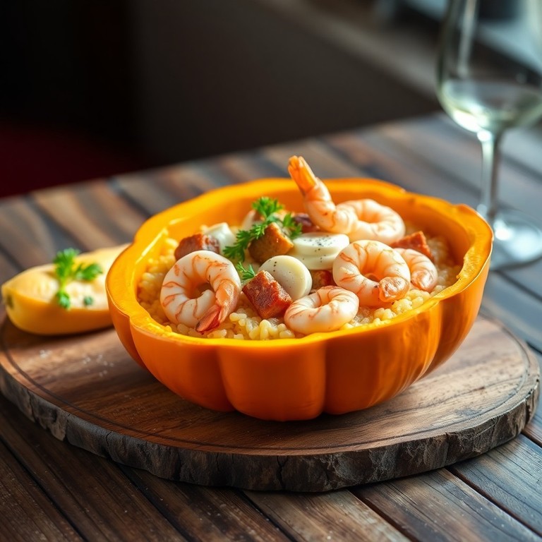 - Risoto de Abóbora Moranga com Camarões e Carne de Porco Assada